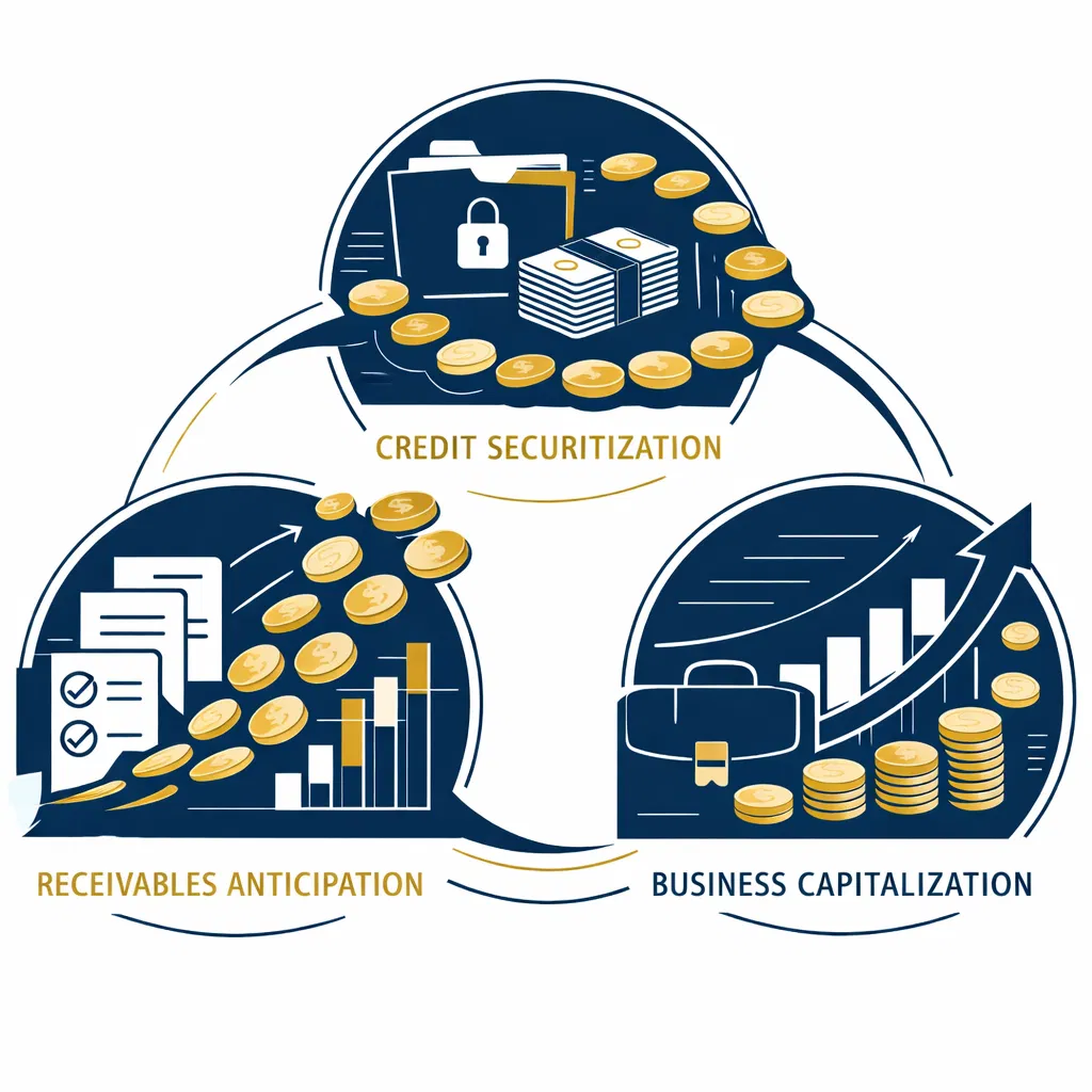 Antecipação de recebíveis e securitização de créditos com agilidade, segurança e expertise de mercado. Transforme suas vendas a prazo em fluxo de caixa imediato.